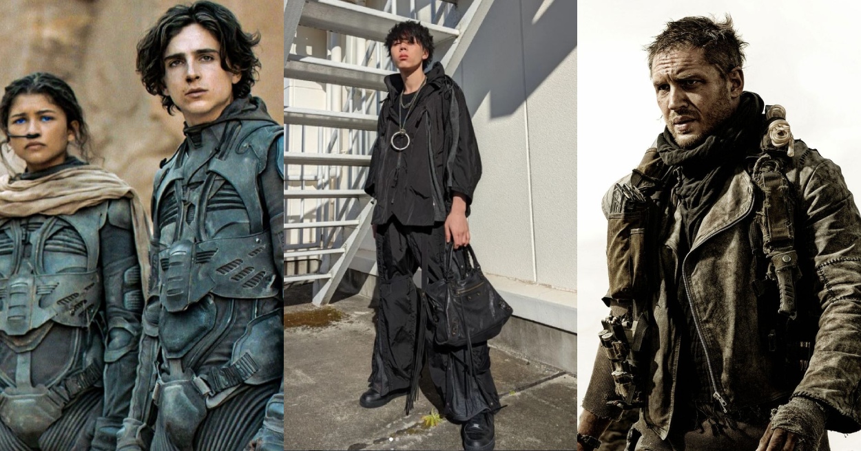廢土風穿搭的靈感來自於科幻電影中末日後的世界,這種風格的衣物通常設計上具有實用性,強調軍事風格與荒涼的末世感。這種風格首先出現在電影《瘋狂麥斯》和《銀翼殺手》之中,這些影片中的服裝設計不僅注重功能性,也將未來感與實用性完美結合,形成了一種獨特的穿搭語言。